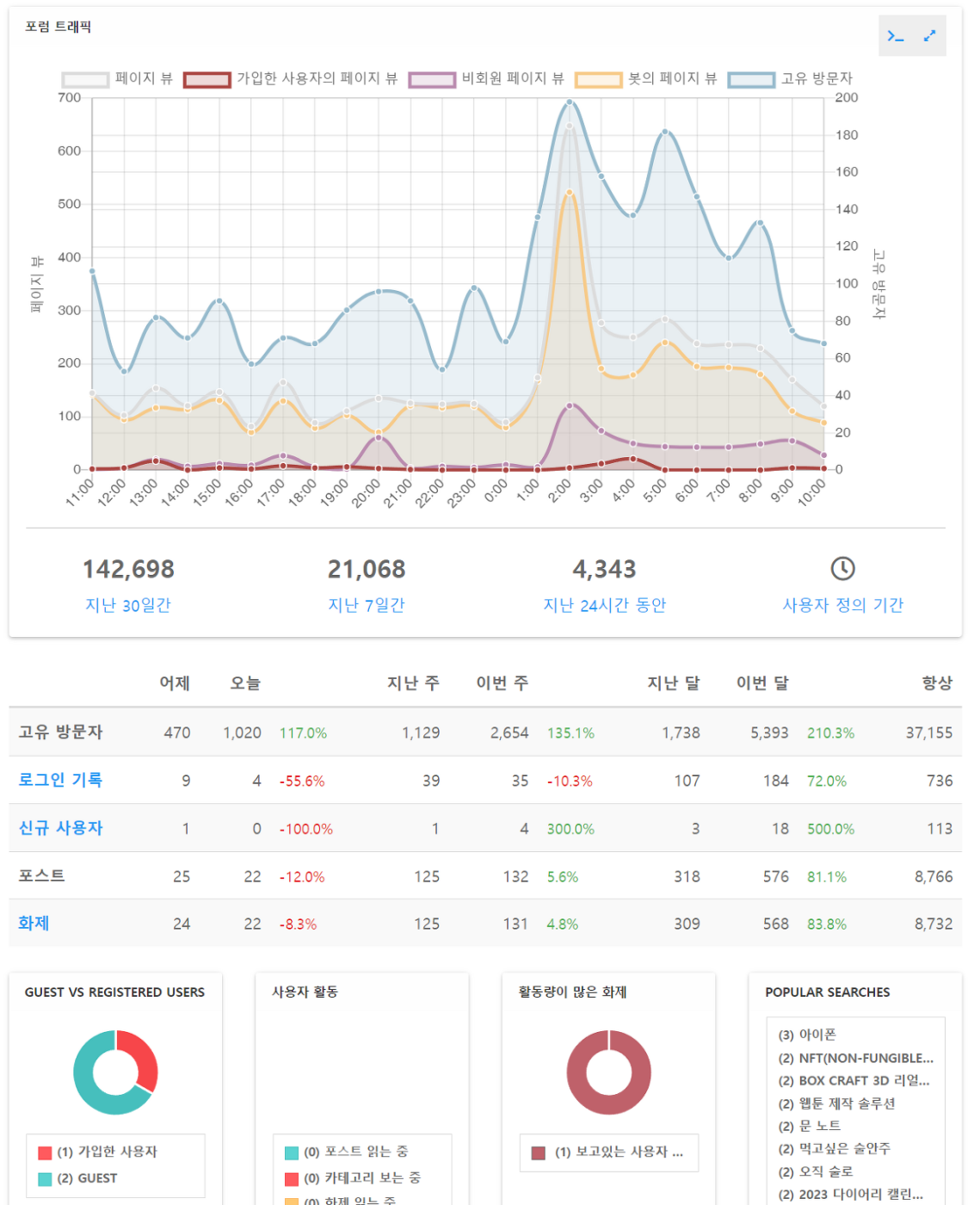 그간 뭐하고 있었냐면 국내에서 사용하지 않는 nodebb에 일단 구글, 네이버, 카카오 로그인( 국내용은 3.0베타 플러그인개발 마무리 중)을 적용하고 현재 1일 고유방문자수 1000명이 넘어갔습니다. 혼자서 가끔 글을 가끔 써서는 안되겠다 싶어서 아예 회사 홈페이지를 닫아버리고 이쪽에 콘텐츠를 옮긴 이후 폐쇄(다른용도 서비스로)할 예정입니다.