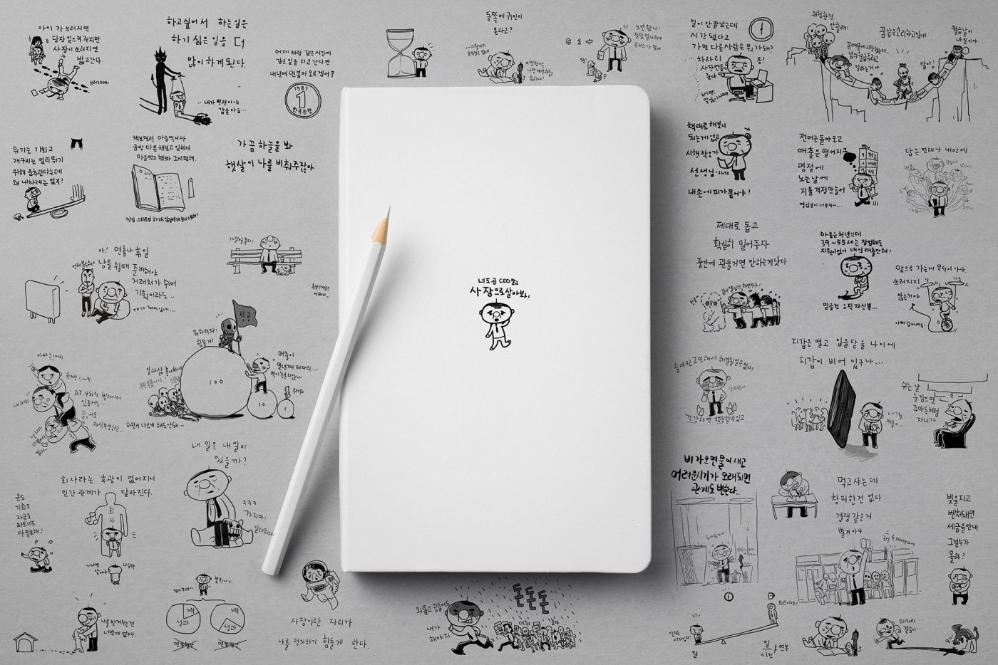 낙서의 쓸모 시리즈 사장툰 지난 10년간 연재했던 사장툰을 이번 달에는 퍼즐과 결합된 책을 만날 수 있고 다음 달에는 사장 수첩을 제작합니다.