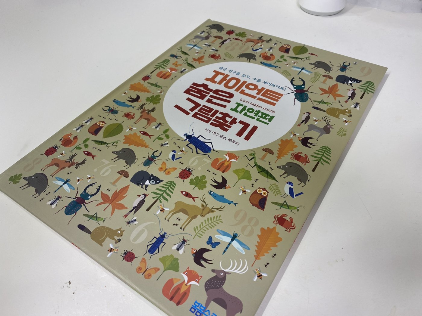 이탈리아 작가 아그네스 바루치가 작업한 자연 생물을을 찾아보는 숨은그림 찾기 책입니다. 일반 책과 달리 숨은 친구들의 숫자를 세어보고 합을 내보는 숫자 세기를 해볼 수 있으며 다양한 미션도 함께 풀어볼 수 있습니다. 29cm x 37cm 의 커다란 책입니다. 이탈리아 화이트스타사의 책을 봄봄스쿨에서 제작 출간하였습니다.