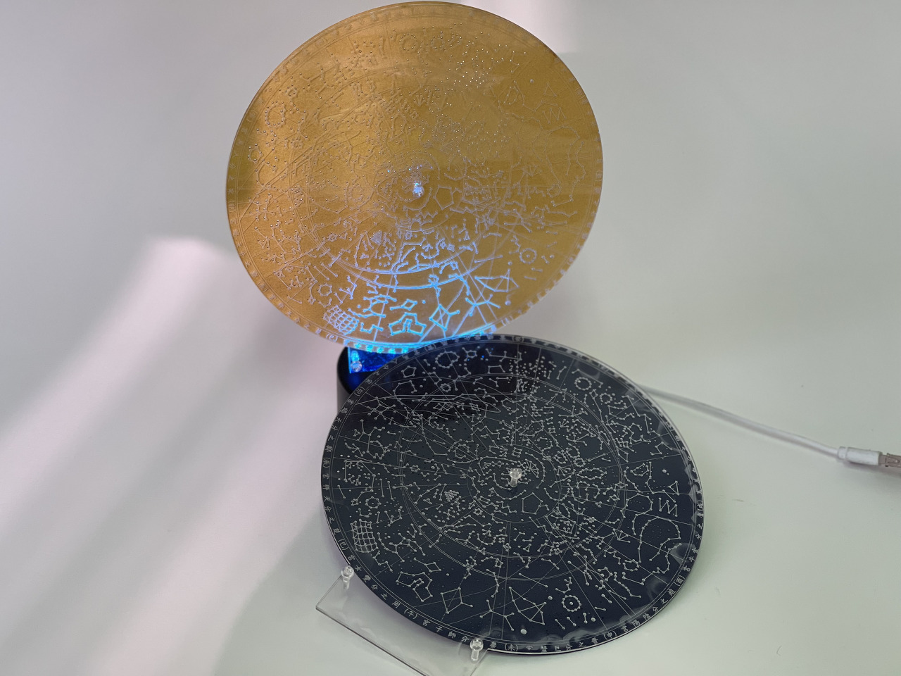 뒷면에 볼트가 채결되어 휠이 움직일 수 있게 구성했습니다. 레이저로 별자리를 별의 밝기별로 커팅해서 아름답게 보입니다.