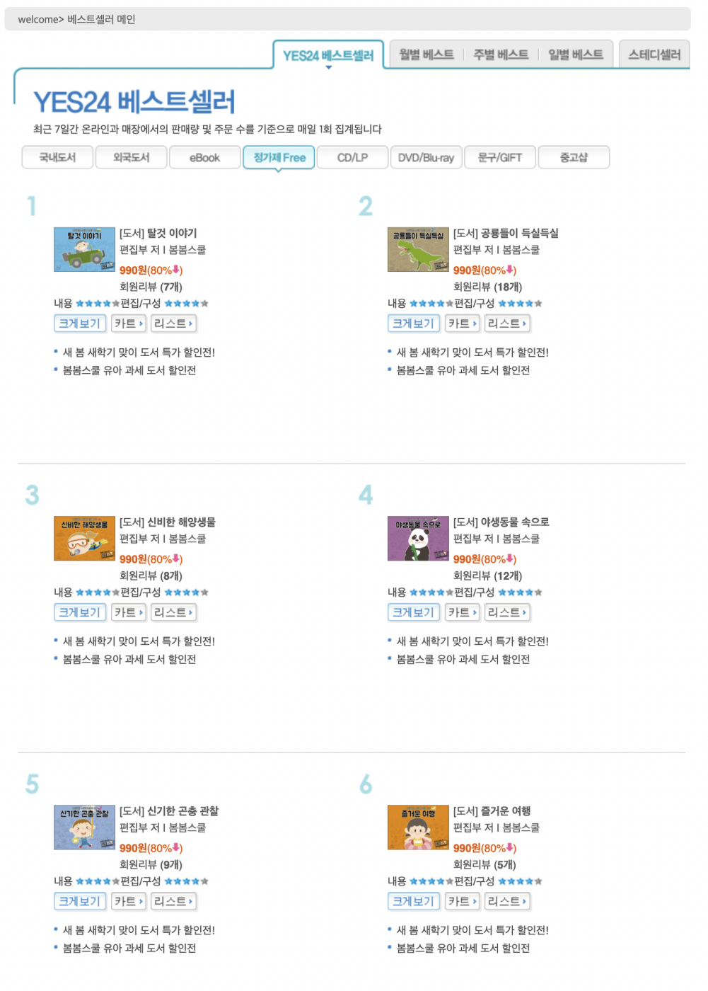 주말에 또 0원 판매 시작되어 Yes24 베스트셀러 정가제free 모두 장악 오늘1000부 주문 들어옴… 창고사장님에게 혼날듯… 세트가 많이 나가면 월요일 바쁜데… 꼭 그러심 ㅠㅠ