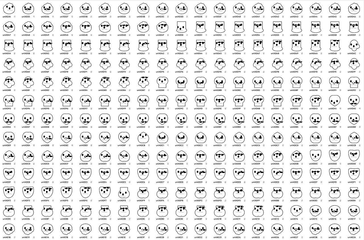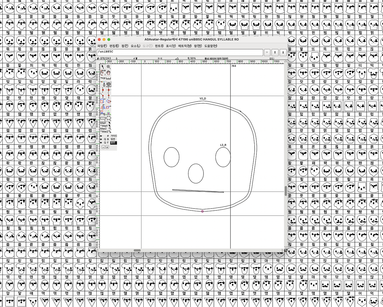 이번에 한글 폰트 조합을 이용해서 캐릭터를 만들기로 했습니다. 지금은 샘플이라 대충 아이디어만 구현했습니다. 아이들 집중력을 키워주는 수 많은 캐릭터들이 겹치지 않고 나오게 할 생각으로 조합해서 만들고 있습니다.