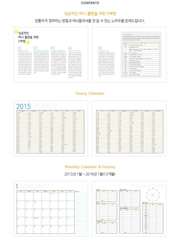 2015 가계부 머니플래너는 그냥 단순한 가계부가 아닙니다. 일상의 기록을 통해 날마다 업그레이드되는 라이프스타일을 만들어가는 스마트한 라이프 플래너입니다.