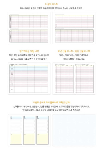 5. 권말에 가족 모임이나 친구들과의 파티, 여행, 생일잔치, 집들이 등을 계획할 때 편리한 프로젝트 기록 칸을 추가했습니다. 일정과 참석하는 멤버, 준비물, 주의사항 등을 메모해두고 편리하게 활용해 보세요.