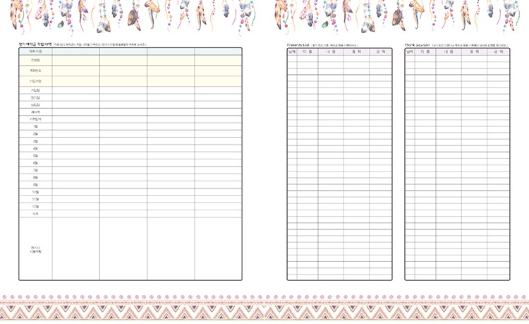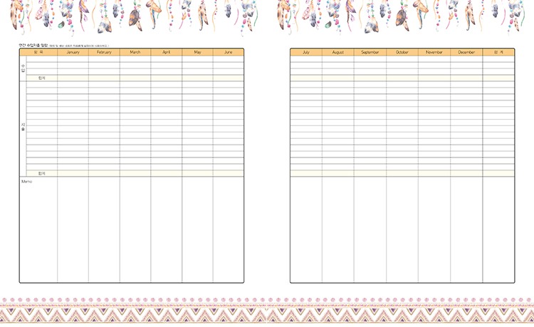 클래식한 느낌의 표지를 넘기면 심플하면서도 감각적인 디자인의 본문이 펼쳐집니다. 편안한 컬러 매치로 구성했기 때문에 매일매일 가벼운 마음으로 꾸준히 기록할 수 있습니다. 또 언제를 기준으로 시작해도 효율적으로 사용할 수 있도록 구성했습니다. 신용카드 지출이 늘어난 라이프스타일에 맞게, 현금과 체크카드, 신용카드와 할부 결제까지 구분해 기록할 수도 있습니다. 정말 신통 방통한 가계부 아닌가요?