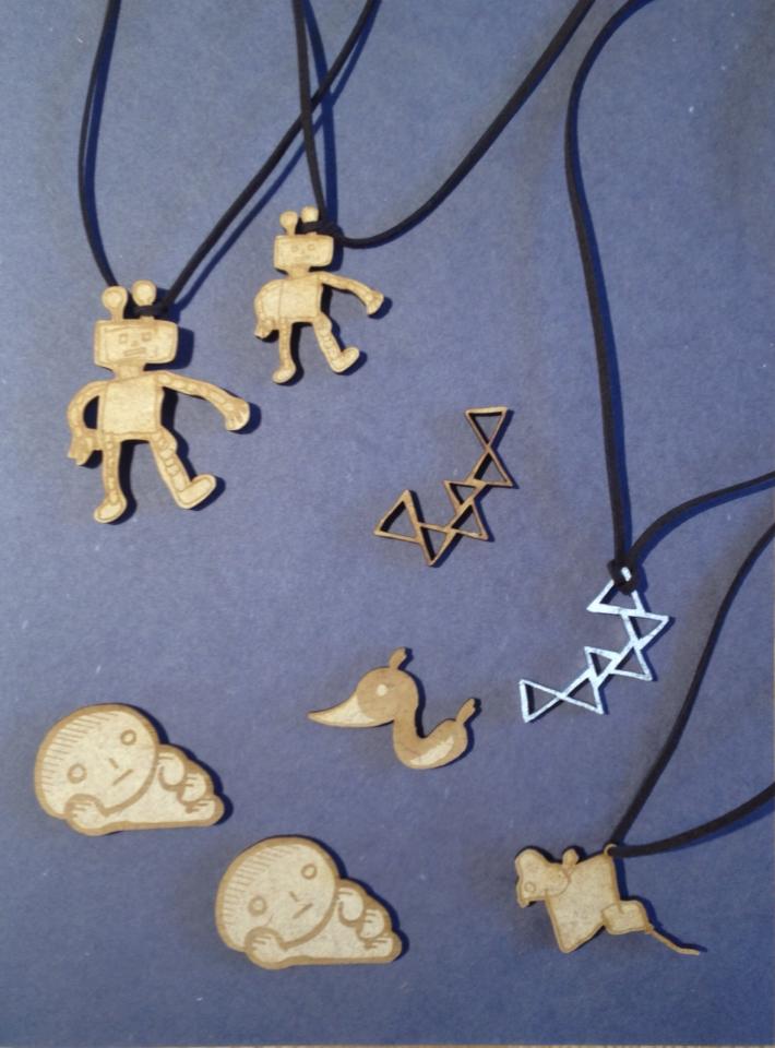 Section1에서 만드신 목걸이와 브로치에요~레이저 컷팅기로 스케치가 바로 악세사리로 된답니다! 🙂 아빠와 아들이 세트로 한 로보트도 넘 귀여워요! 😉 탄빵도