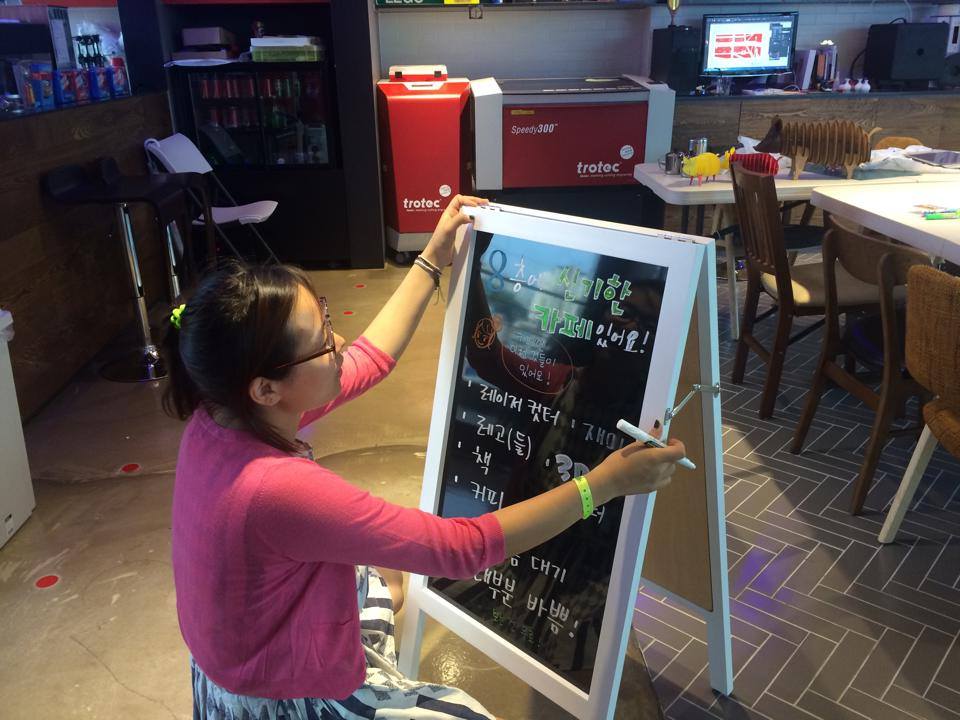 1층 출입구에 입간판을 배치했어요. 카페에 놀러오세요 ^^ Posted by EverPress for Node