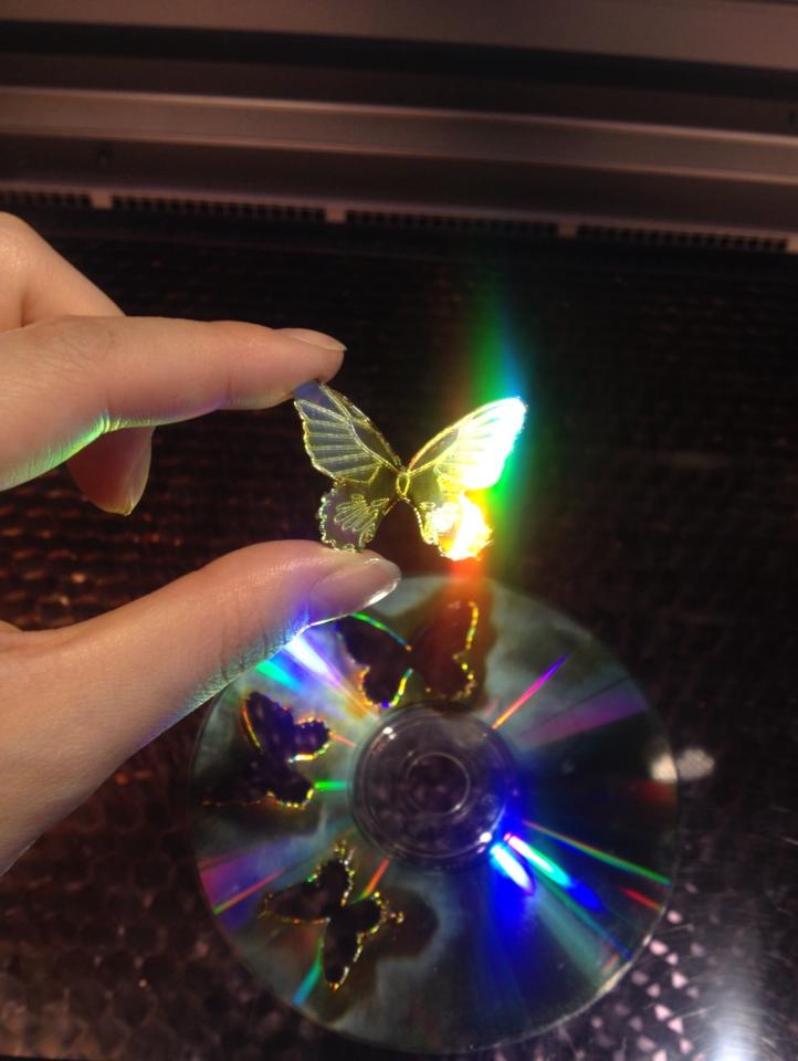 레이저 컷팅기로 이런 것도 할 수 있어요~~ 쓰지 않는 CD가 나비로 재탄생!* 🙂 Posted by EverPress for Node