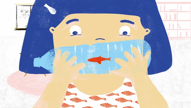일러스트레이터 신시아 알론소의 무의미한 그림책 무대는 발견, 실험, 이별의 과정에서 어린 시절의 상상력을 자극합니다. 가까운 강을 방문한 어린 소녀는 빨간 물고기에 반합니다. 물고기 세계에 빠져들고 싶어 자신의 꿈을 실현시키고자 물고기를 잡아 집으로 돌아옵니다. 그리고 다양한 주전자, 안경, 그릇 및 작은 몸을 담글 수 있는 수영장을 사용하여 그녀는 집 전체에 정교한 수족관을 만듭니다. 마침내 물고기와 함께 수영장에 들어간 그녀는, 이곳이 물고기를 위한 세상이 아니라는 것을 깨닫고 마음이 아프고 아쉽지만 물고기를 다시 강으로 되돌려 놓는 어려운 결정을 내립니다.