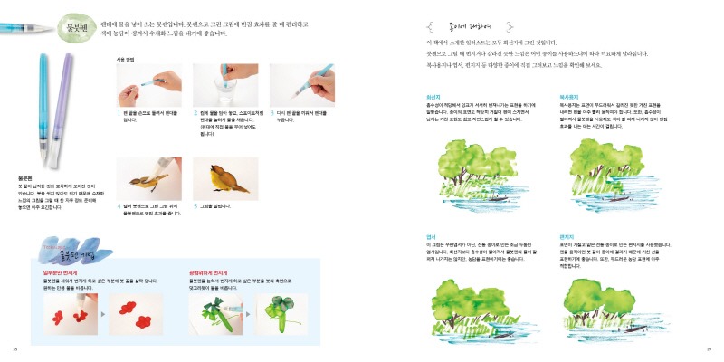 Technique 기법 물붓펜을 사용해서 본격적인 일러스트를 그려보세요.