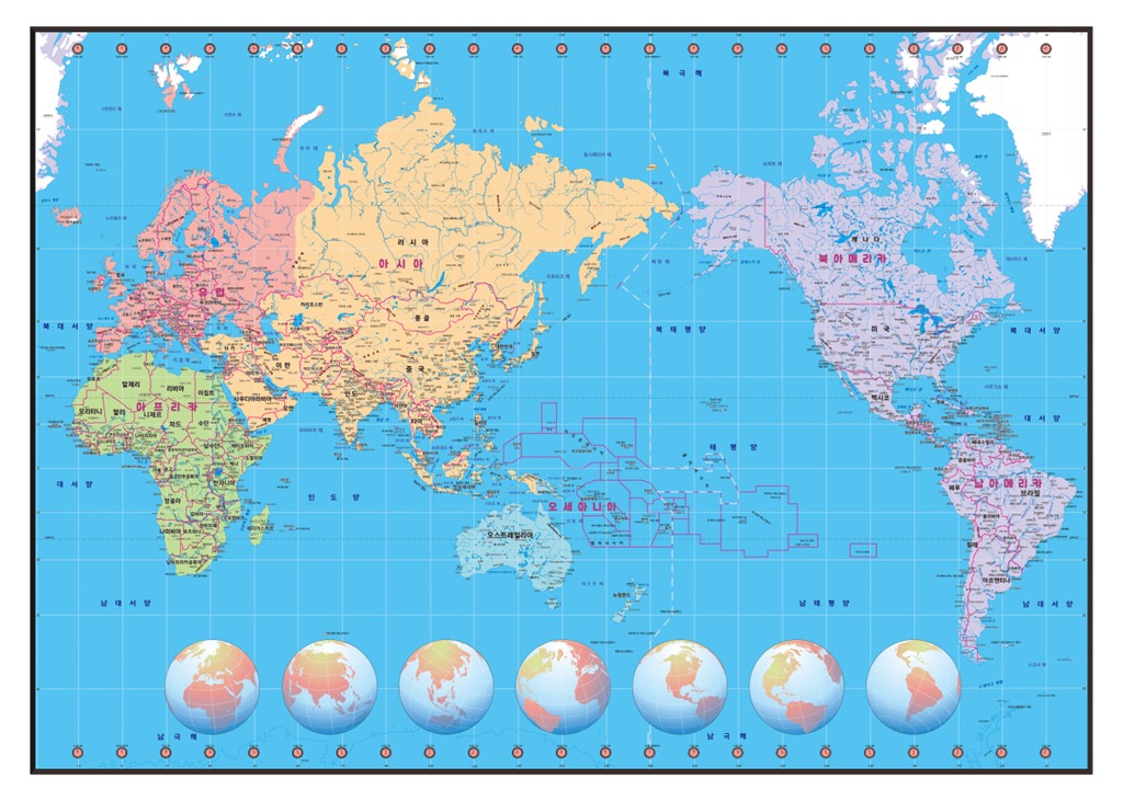 대형 세계지도에 리무벌 스티커로 심화 학습