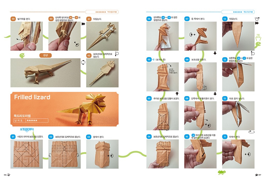 자르지 않고 한 장으로 접는 파충류·양서류 종이접기