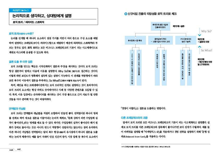 우리는 안타깝게도 사회에서 생존하는 법을 학교에서 배우지 못했다. 비즈니스에서 요구하는 논리적 사고와 정보 정리 능력, 인재와 기회를 알아보는 통찰력은 절대 학교에서 배울 수 없는 것이다. 요즘처럼 급변하는 비즈니스 환경 속에서 화이트칼라가 생존하려면 ‘기술’을 익혀야 한다. 공장에서 자르고, 조이고, 붙이는 그런 류의 기술이 아닌 효율적으로 업무력을 발휘할 수 있는 ‘사고의 틀’로 스스로를 무장해야 한다는 얘기다.