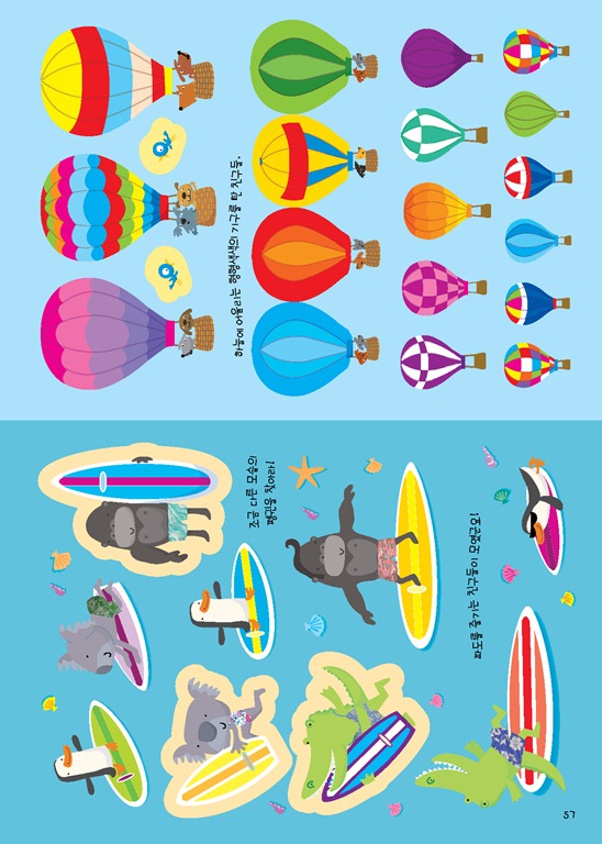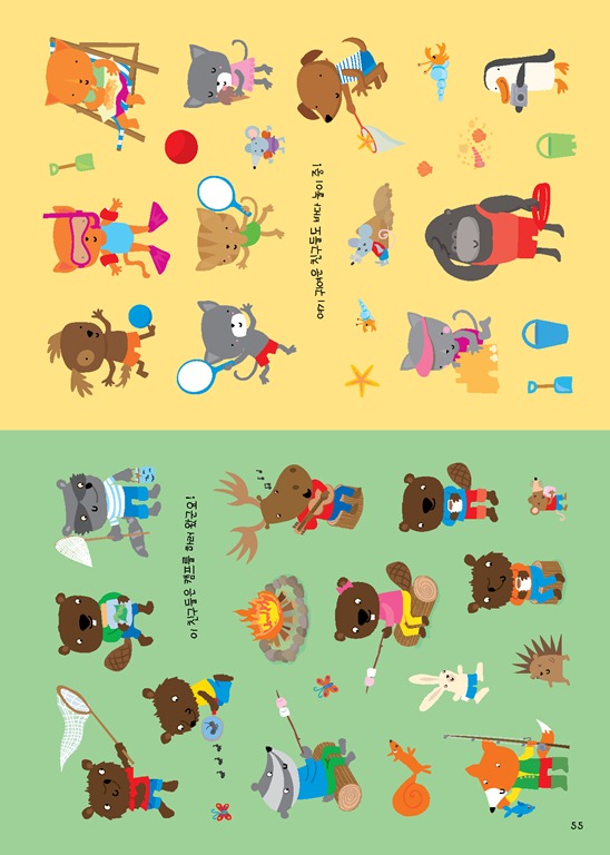 이뿐만이 아니다. 본문에 마련된 바닷가와 공원, 해저, 공항, 도시, 정원, 시골 마을, 숲속, 편의점 등의 배경을 이용, 자유롭게 스티커로 꾸미면서 개성과 창의력, 공간 감각을 기를 수 있다.붙였다 뗐다 자유로운 리무벌 스티커가 무려 1000개!