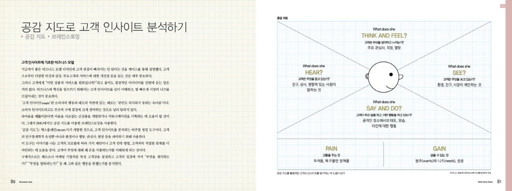 BMG의 캔버스는 개인 이외에도 기업 연수나 교육 프로그램에서도 충분히 활용 가능한 프레임워크라 할 수 있다. 고객이 원하는 상품의 가치가 무엇인가를 고민해보지 않으면 글로벌 비즈니스경쟁에서 살아남기 힘들다. 디자인 사고의 수단으로 BMG의 캔버스는 활용할만한 가치가 있다. <비즈니스 모델 제너레이션 워크북>은 이를 돕는 충실한 길잡이 역할을 해줄 것이다.