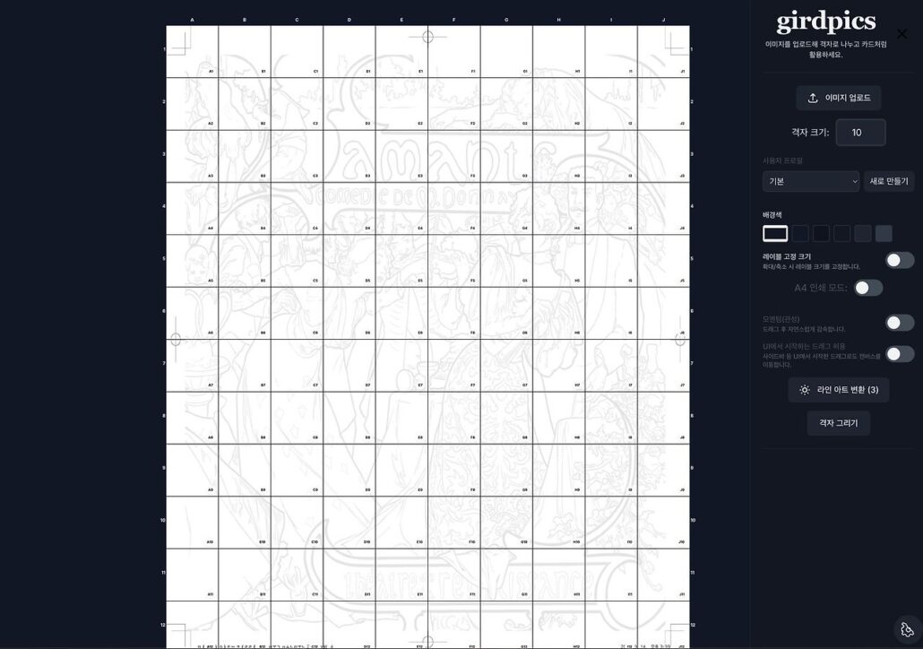 격자 번호 매기기: 혼동을 방지하기 위해 각 격자의 가로와 세로에 숫자나 알파벳으로 번호를 매겨두면 편리합니다.