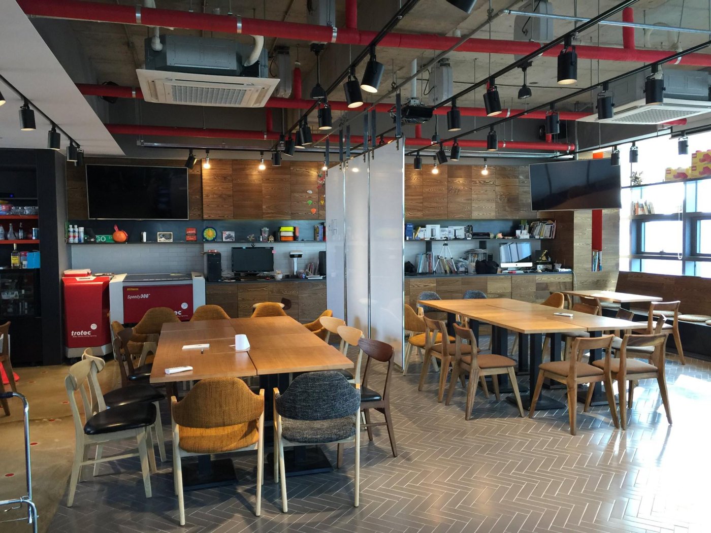 대관을 위해 화이트보드 칸막이로 공간을 두 개로 분리했습니다. Posted by EverPress for Node