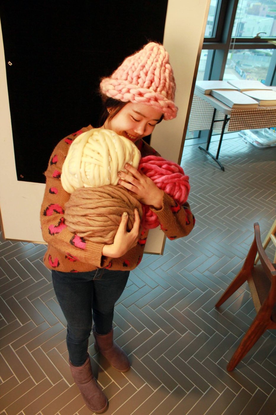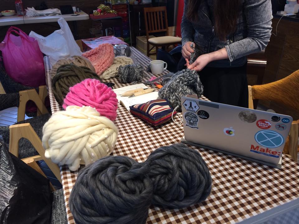 GIANT KNITTING with BIG LOOP YARN 워크샵에서 만들 양모 모자에요! 너무 예쁘죠?! 😉 포근하고 따뜻한 LOOP YARN! 잘 준비해 놓을게요~~~ 정말 따뜻해요!