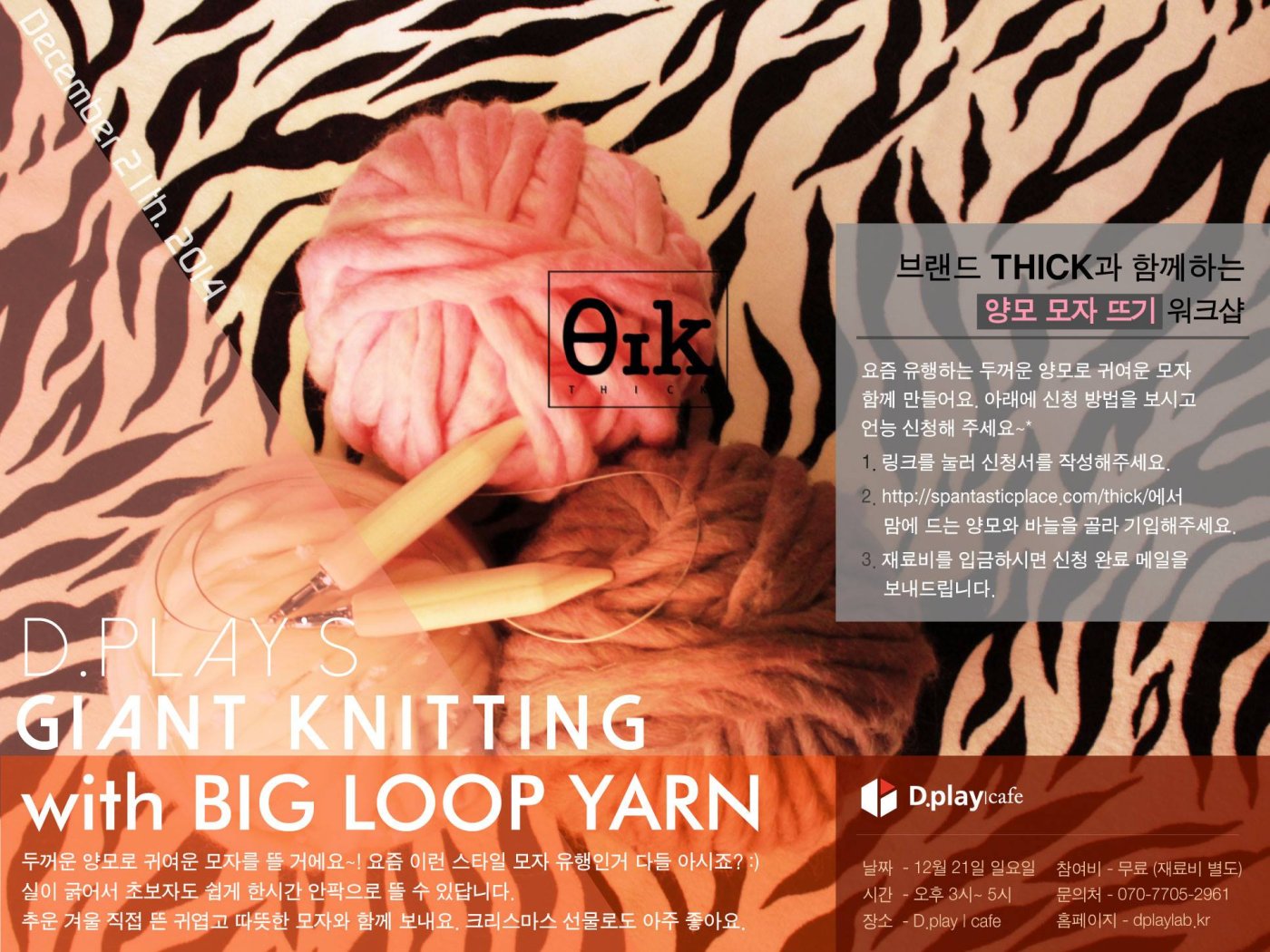 이번주 일요일! 2014 12월 21일에~ 브랜드 THICK과 함께하는 GIANT KNITTING with BIG LOOP YARN 워크샵이 있죠? 사진처럼 데일리 룩에도 참 잘어울려요~!!