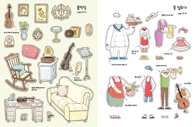 생생하게 그려진 정교하고 세련된 그림의 스티커북