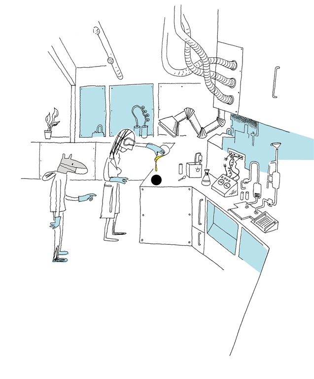 변덕스러운 드로잉과 시니컬한 유머, 구멍을 이용한 기발한 상상력이 즐거움을 유발한다