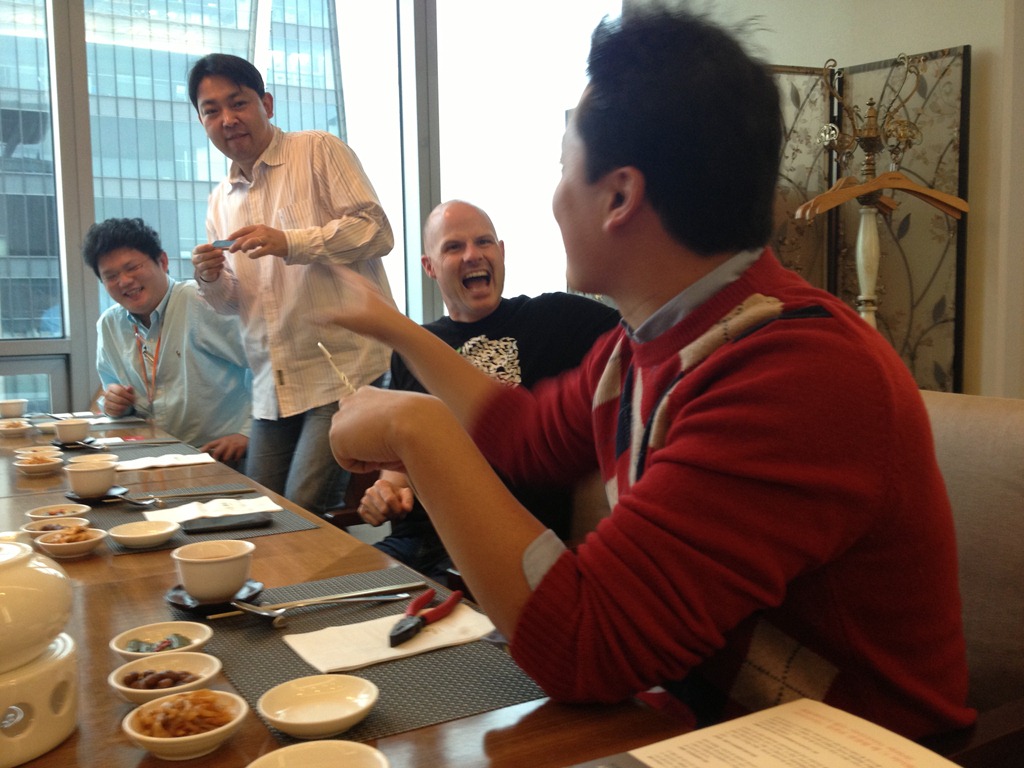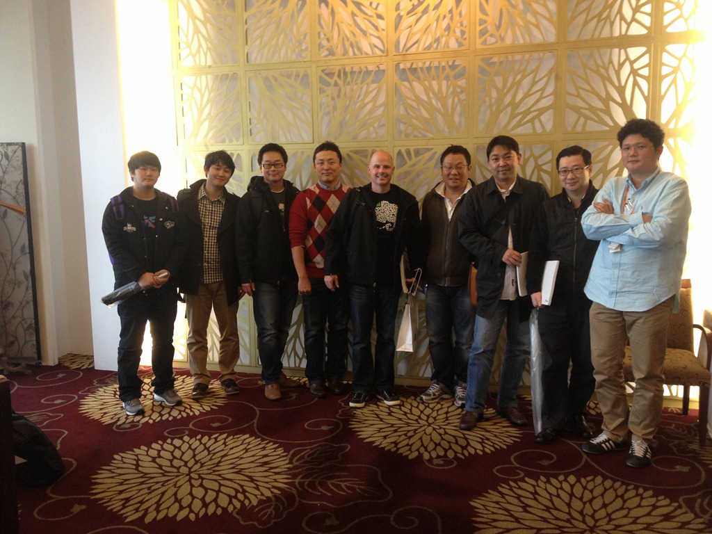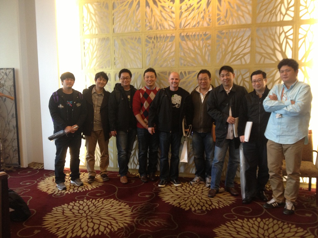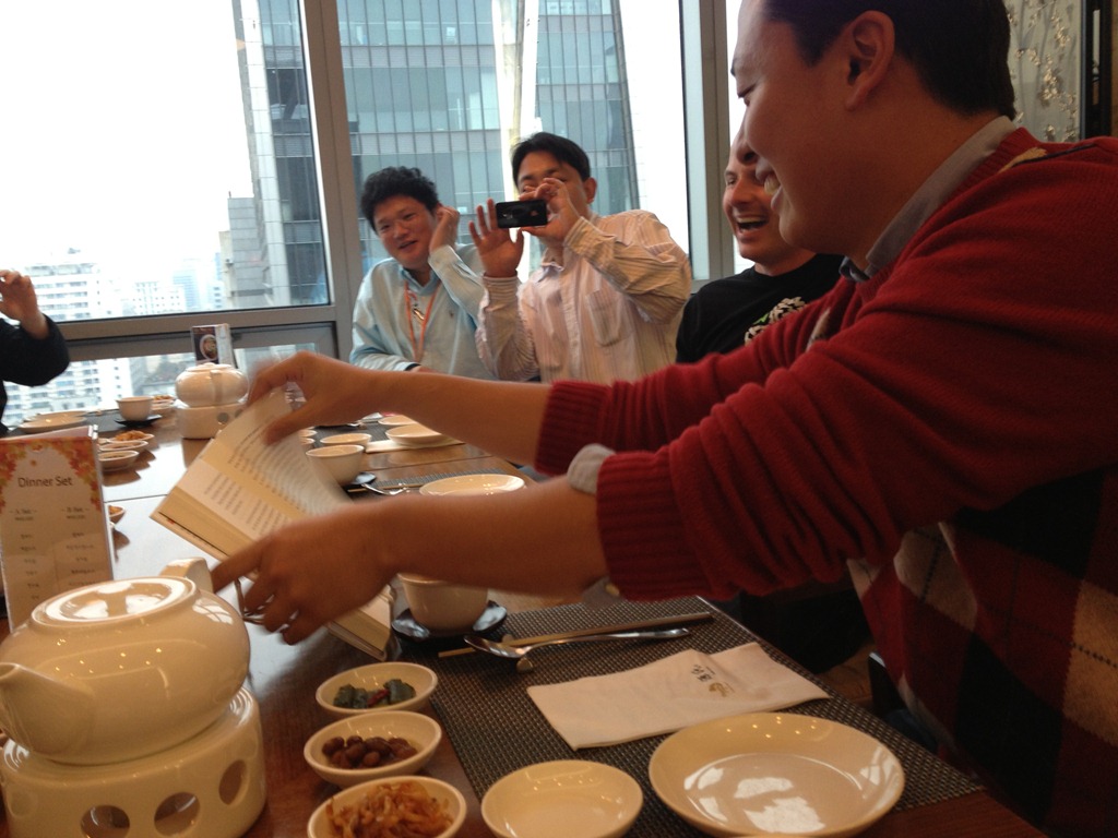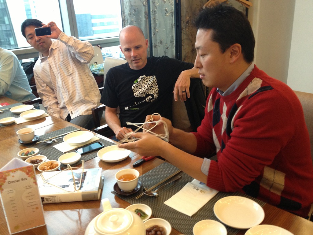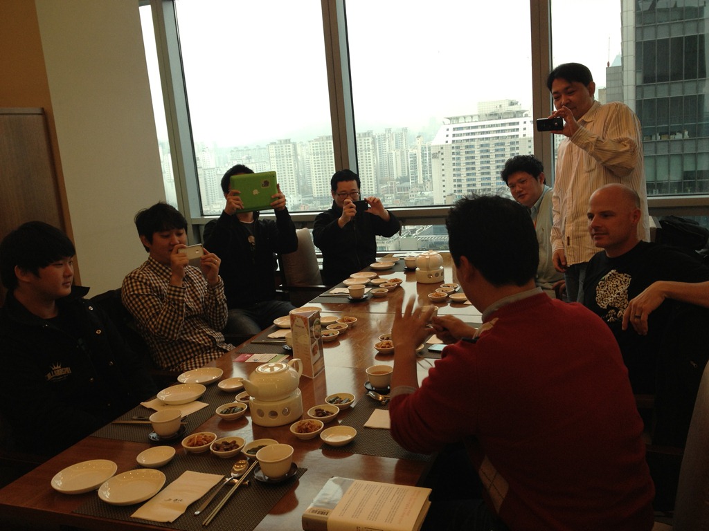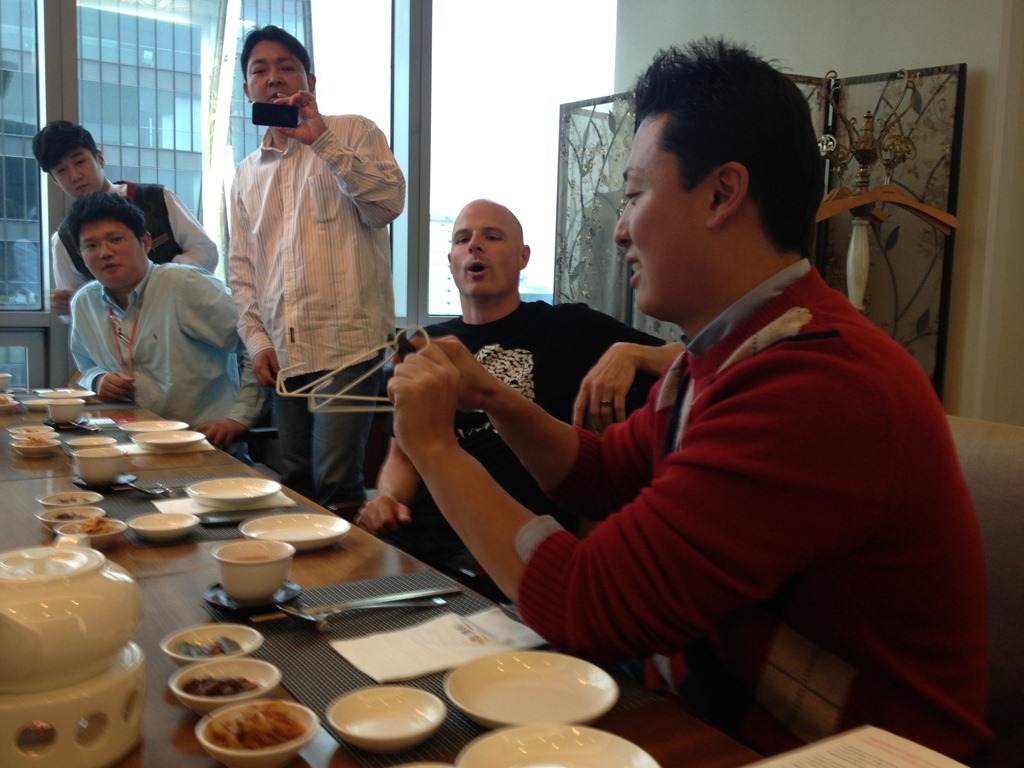 에버노트 아시아 태평양 지역 트로이 말론 사장은 손으로 기록한 노트에 큰 관심을 가져서 염지홍(Passion Design)대표와 정밀한 한글인식에 관련된 기술적 자료부분을 제공하기로 (노트 스캔) 했고 식사 전에 염지홍 대표가 옷걸이로 만든 거치대(Book StandUP)의 새로운 버전들을 한번에 모두 보여줘서 모두들 즐거워했습니다.