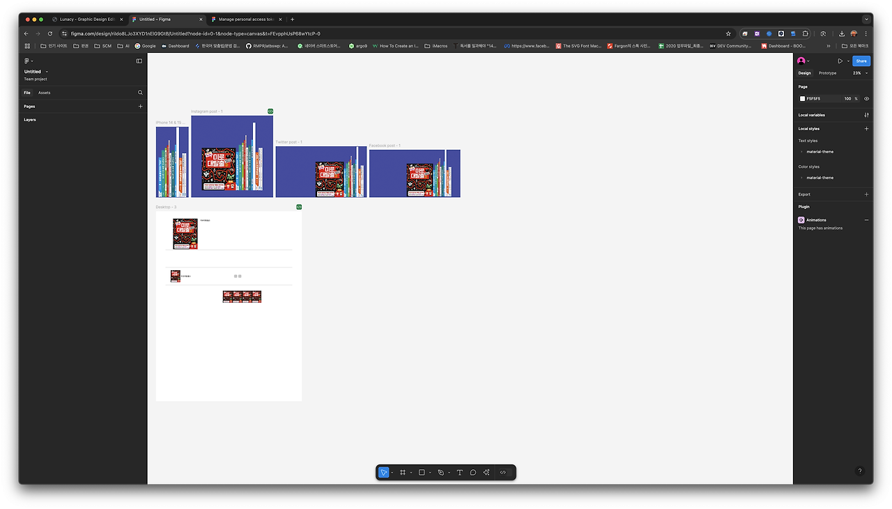 사실 매월 15불 정도에 클라우드 문서를 사용할 수 있는 기능이 있는데 그냥 원드라이브에 넣어놓고 다니면 작업에 대해서 고민할 거 없습니다. 동료와 굳이 클라우드에 공유할 필요한 내용도 아니고 파일 주고받으면 되는 것이라서 기능적으로 빠지는 것도 없고 딱히 피그마의 새로운 기능에 대해 관심도 없었으니 일단 만족합니다. 사실 불만이 있었던 부분은 figma가 아니라 Adobe에서 시작되어 인수된다니까 figma를 써본 것이고 폰트 개발 관련 일을 할 때 현재 lunacy 같은 무료 svg 에디터가 필요해서 검토했는데 개발사가 유연성이 있어 앞으로 기능에 대한 부분을 제안하면 수용해 줄 것 같기도 합니다.