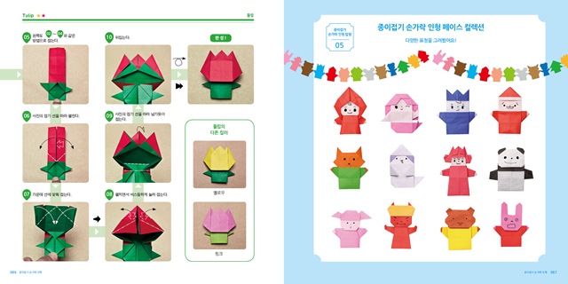 ‘자르지 않고 오로지 한 장으로만 접는다’는 저자의 원칙은 이 책에도 고스란히 적용되어 자르거나 붙이는 일 없어 한 장으로 귀엽고 앙증맞은 손가락 인형을 만들 수 있습니다.