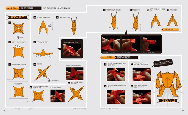 <로봇 종이접기 오리로보>는 기존의 종이접기 책과는 전혀 다른 새로운 콘셉트의 종이접기 책입니다. 로봇을 소재로 한 이 책의 종이접기는 매우 정교하면서도 실제 프라모델과 흡사한 완성도에 놀라게 됩니다. 또한 독자적인 세계관과 이야기가 담겨 있기 때문에 SF 애니메이션의 주인공 로봇을 만드는 느낌을 가질 수 있습니다.
