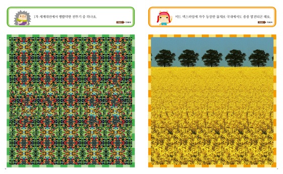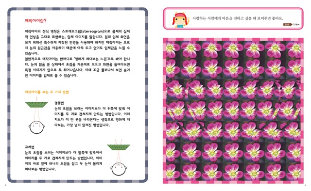 <매일매일 두뇌 트레이닝 매직아이>는 그림과 사진, 글자 등 다양한 이미지를 담아 독자들이 매직아이의 매력을 듬뿍 느낄 수 있도록 구성했다. 이제 추억의 매직아이로 여행을 떠나보는 것은 어떨까? 드라마 속 주인공들처럼 숨은 이미지에 마음을 담아 친구 혹은 연인에게 보내는 것도 꽤 재밌는 일일 것이다.