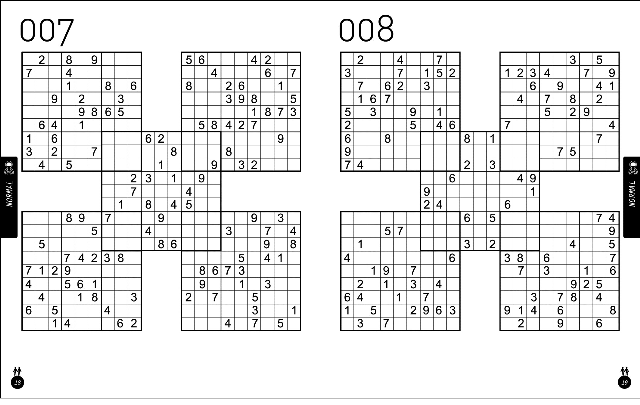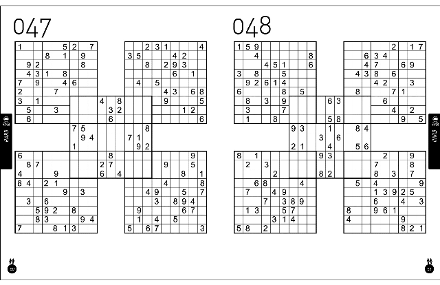‘사무라이 스도쿠’는 기존 스도쿠에서 발전, 5개의 문제가 연결된 결합형 퍼즐을 담고 있다. 5개의 스도쿠가 결합된 모양이 마치 사무라이 옷과 비슷하다고 해서 영국에서 이름 붙인 이 퍼즐은 보다 강력한 몰입의 즐거움을 만끽할 수 있다.
