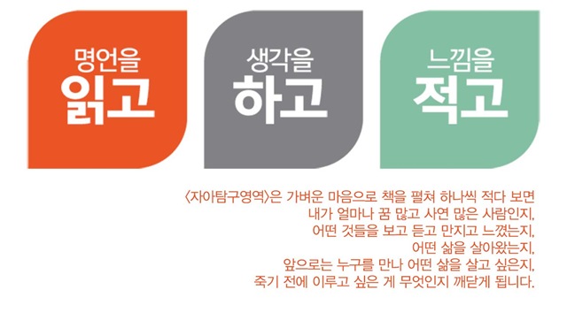 <자아탐구영역>은 공부할 때 열심히 필기하고 암기하던 것들이 아닌 나 자신에 대해 충분히 생각하고 탐구할 시간을 가질 수 있게 합니다.