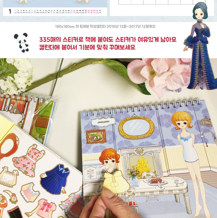 리무벌 스티커로 구성되어 여러 번 떼었다 붙였다 할 수 있으니 그때그때 패션이 새롭게 연출되는 코디네이터 스티커북 시리즈 <패션 퀸>에 더해<탁상달력>이 나왔어요. 책상에서 쓰기 알맞은 크기이고 아기자기해서 인테리어에도 효과적이랍니다.