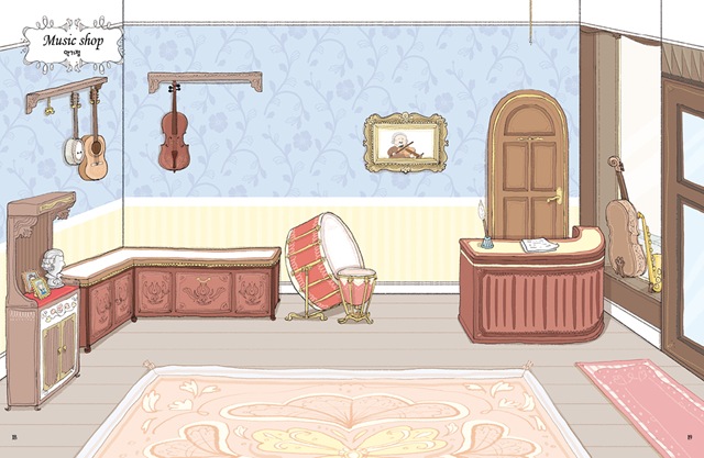 아기자기한 동화나라의 마을에는 가볼 만한 곳이 잔뜩 있답니다. 이곳 거리에는 따끈따끈한 빵이 나오는 제과점, 신선한 야채와 고기를 살 수 있는 식료품점, 멋진 숙녀로 변신할 수 있는 옷가게, 우아한 트럼펫 연주를 들을 수 있는 음악 감상실 등 흥미로운 가게들이 가득합니다. 독자들은 스티커를 이용해 이 마을을 더욱 멋지고 예쁘게 꾸며줄 수 있어요. 보기만 해도 먹음직스러운 도톰한 빵, 화려한 장식으로 꾸며진 케이크를 제과점 전시장에 올려두어요. 또 머리카락이 빠지지 않도록 제빵사의 머리에 전용 모자를 씌우는 것도 잊지 마세요! 섬세하고 부드러운 그림은 아이들의 시선을 사로잡고, 직접 스티커를 붙여 마을을 꾸미면서 눈과 손의 협응력을 키우고 창의력, 미적 감각 및 집중력을 높일 수 있습니다.