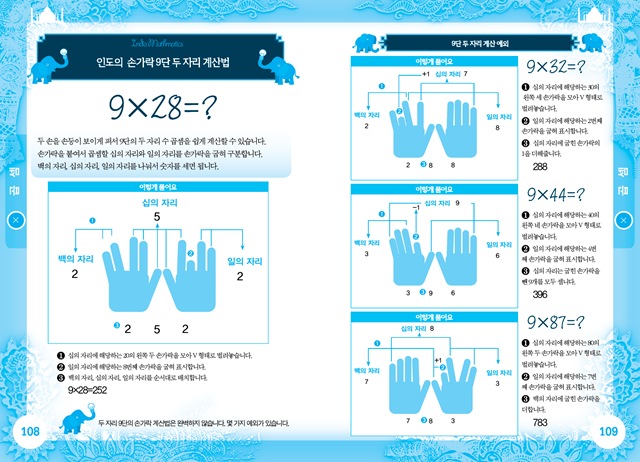 인도의 손가락 16, 17, 18, 19, 20단 계산법