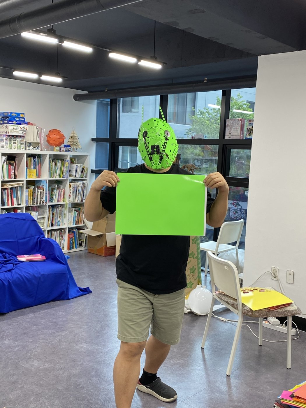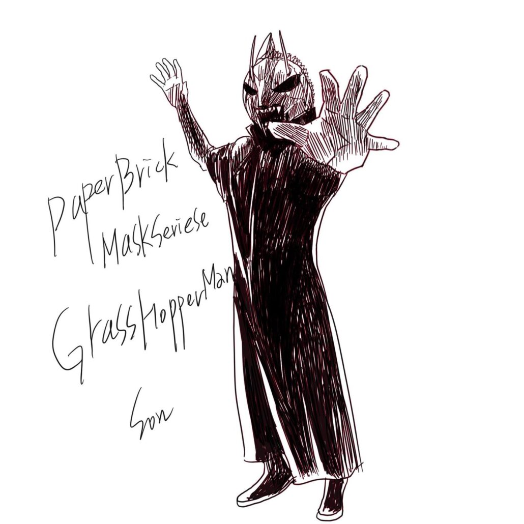특촬용 크로마키 가면을 가지고 조금 변경하여 메뚜기 마스크를 만들었습니다. 이 마스크를 만화구도로 만들어 악당의 면모로 디자인을 해보았습니다.