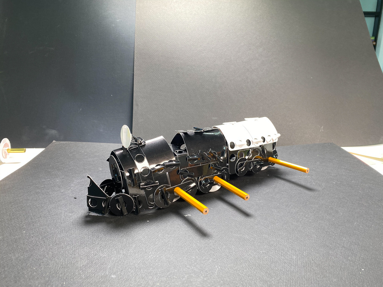 굴러가는 기차는 바퀴를 기차 안쪽에 넣어야해서 구조가 조금 다르게 만들었습니다. 열차에 바퀴 4개 객차에 2개가 들어갑니다.