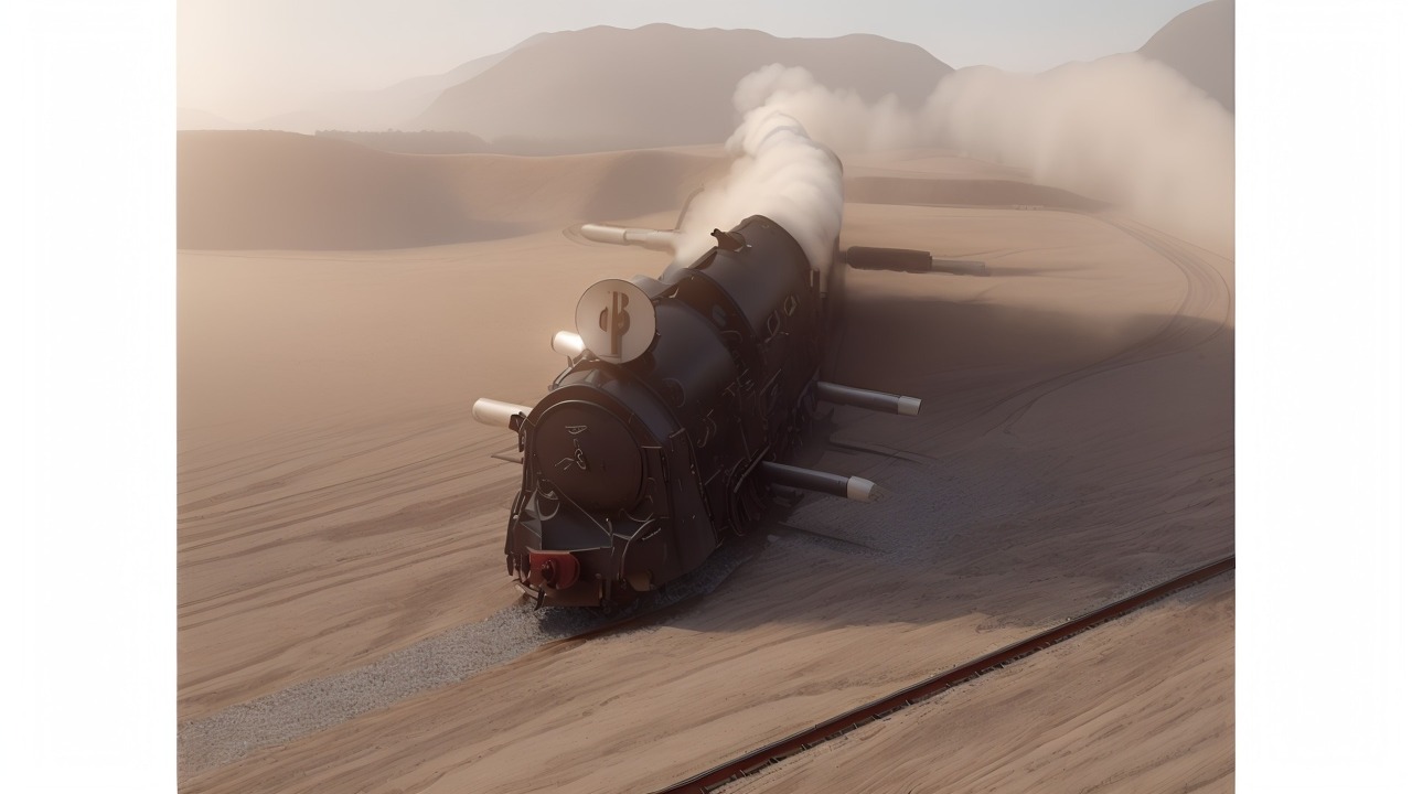 서부시대에 열차타고 황량한 대지를 지나가는 열차