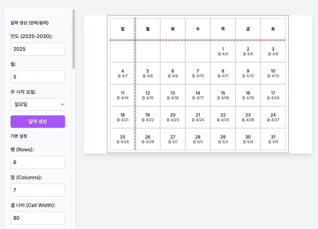원래 공개 안하려고 했는데 인디자인 그리드 관련된 솔루션을 캘린더, 가계부, 다이어리 디자인을 자동화하고 있고 그걸 다시 웹에서 기록하고 편집하는 솔루션, 즉 종이랑 데이터가 결합되는 작업(이건 그냥 자동생성 + 데이터를 손으로 넣었지만 자동화 처리하는 중 반대로 디자인을 한 것을 학습해서 디자인을 만들 수 있습니다.)