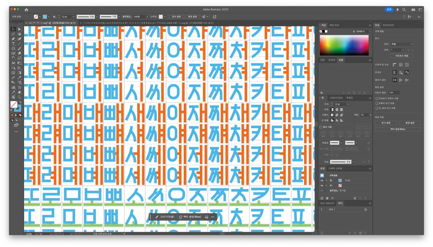 일러스트레이터 스트로크로 한글폰트 고딕체 만들기 스트로크로 만들어서 아주 빨리 폰트를 개발할 수 있습니다.
