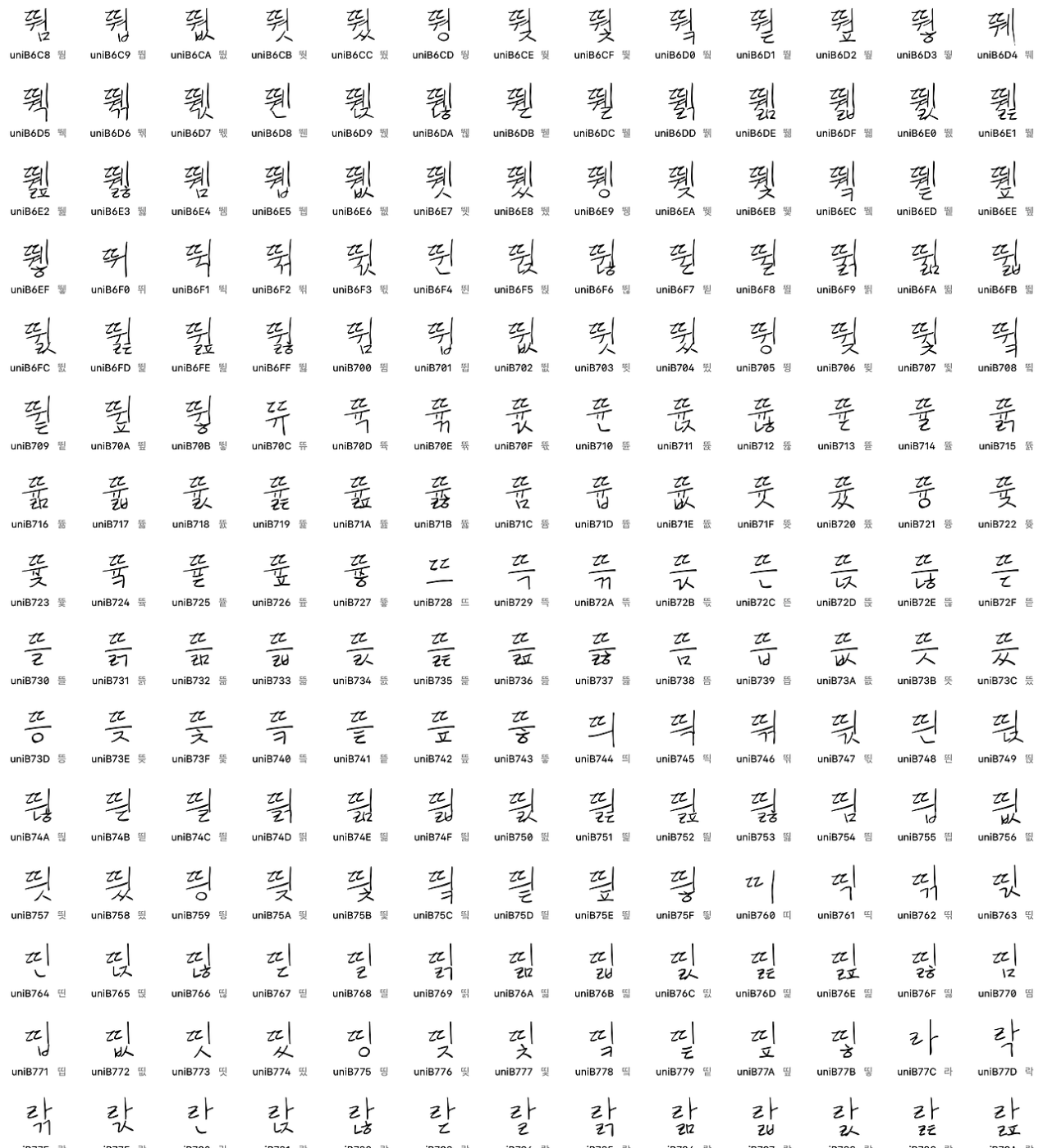 이제 교정용으로 만들 수 있는 글자가 어느 정도 완성이 된 거 같습니다. 본인의 글씨로 본인이 교정 보는 폰트라서 캘리그래피나 취미로 필사하는데 정체로 연습하는 분들에게 도움이 될 것이라 생각됩니다.