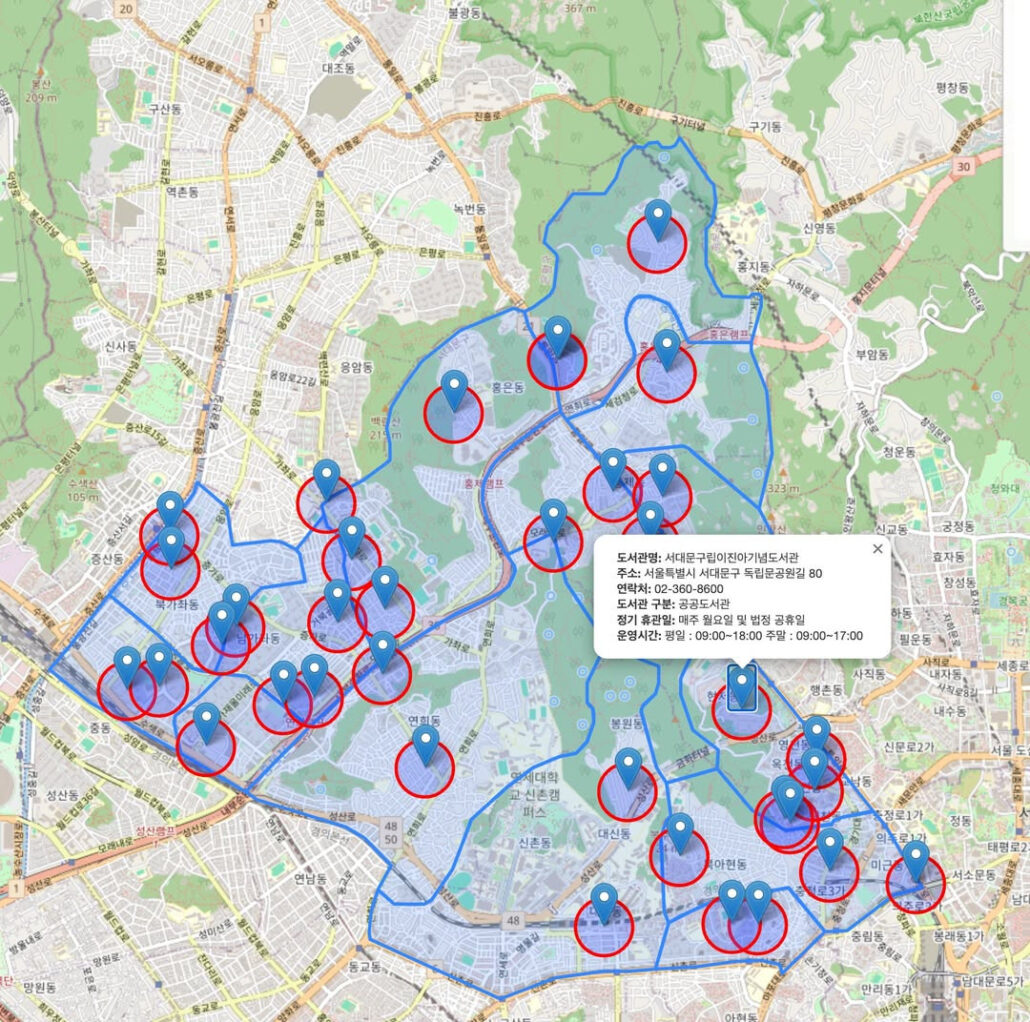 서대문구 도서관 정보를 확인하고 그 구분 200m 정도를 반경으로 해서 도서를 기증하거나 거래할만한 편의점이나 거점 장소를 찾고 다시 만날 장소를 찾거나 위탁으로 주차가 가능한 장소를 확보해서 차량을 대고 거래하는 퇴근후 물물교환 이라는 앱을 만드는 중... 당근마켓 차 트렁크 버전이라고 생각하면 됩니다.