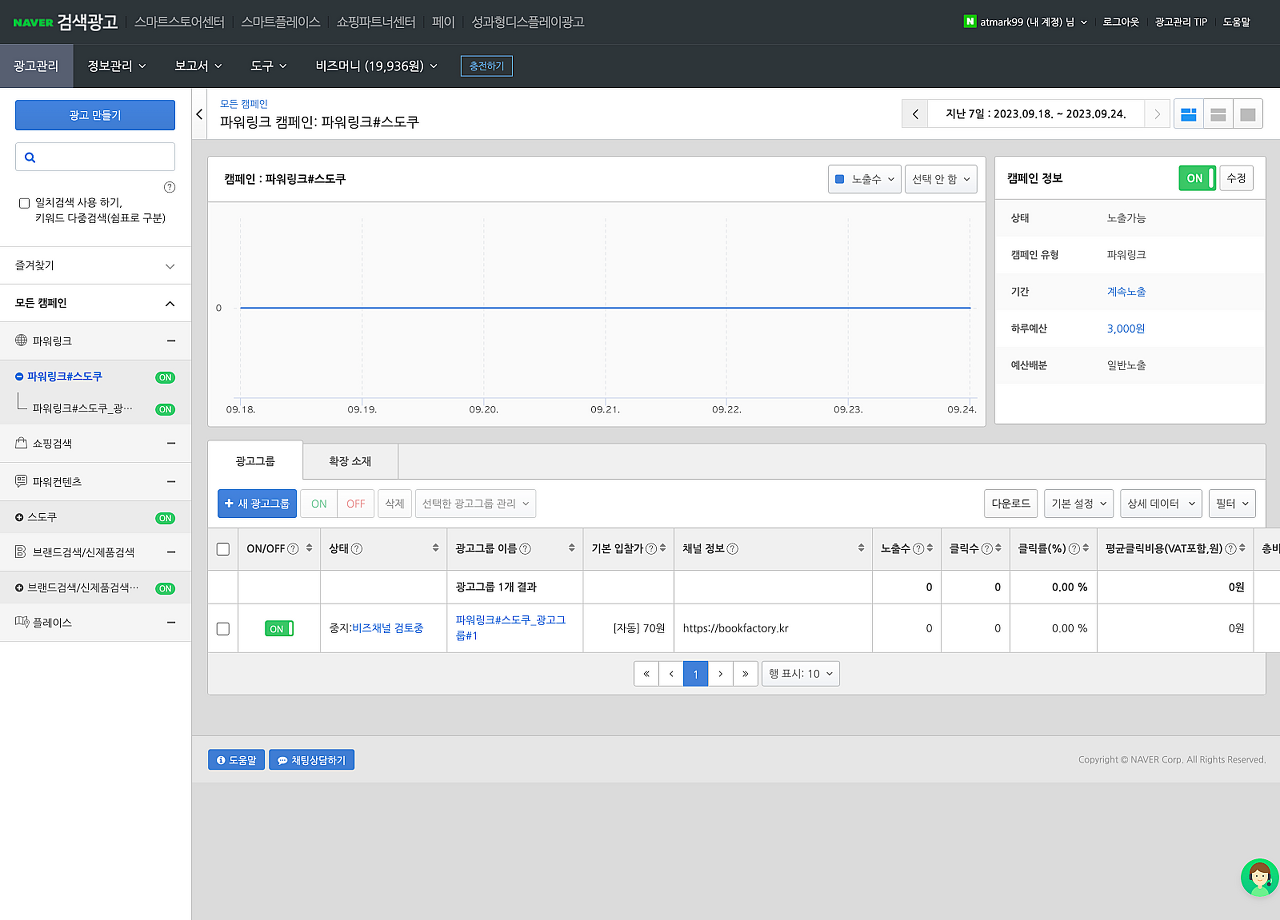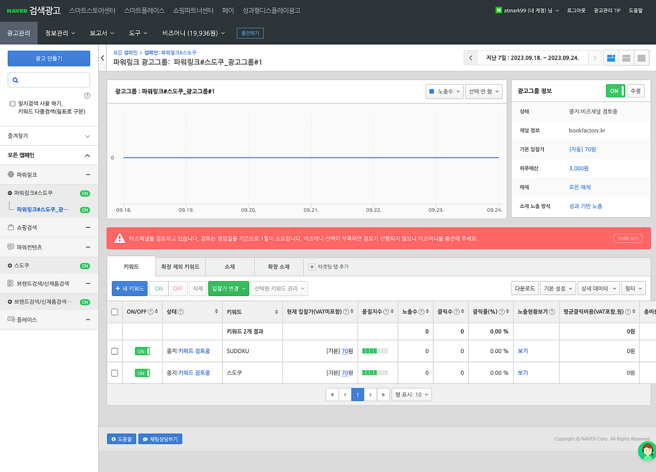 파워링크에 스도쿠 라는 키워드를 넣고 광고를 집행했습니다. 대략 검색에 70원 정도 이거 다른 키워드도 추가했는데 그건 나중에...