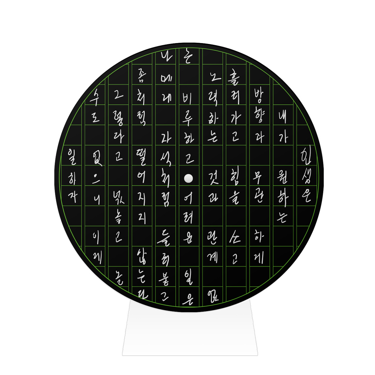 원고지가 원이라 방사형으로 작업한 것도 있고 이 것은 말머리로 다른 숨은 의도의 문장을 만드는데 사용할 수 있으리라 생각됩니다. 수평, 수직의 원고지를 만든 이유는 칼선 하나 따서 최대한 이용하려는 시도 정도라고 보시면 됩니다.