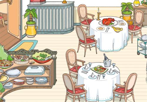짠! 순식간에 풍성한 레스토랑이 되었습니다.