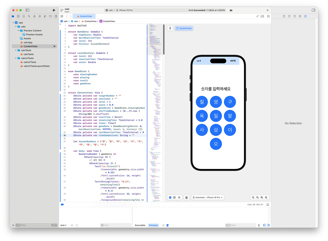 계산기를 한글로 바꿔봤습니다. 맨 처음에는 그냥 이런 생각을 구현해보는데 이어서 실제로는 메모리 게임을 만들었습니다.