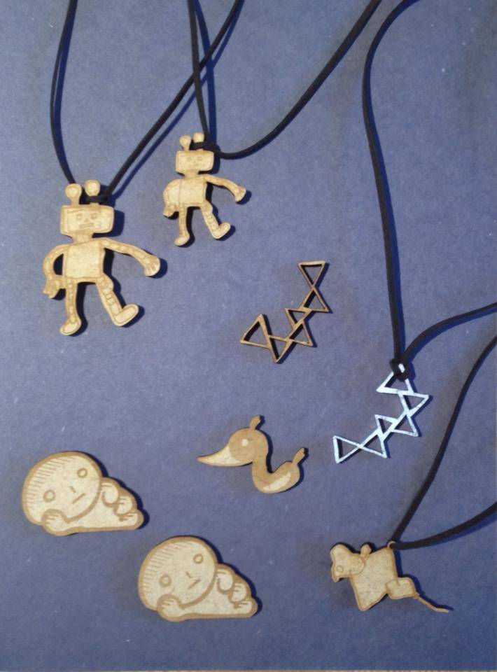 Section1에서 만드신 목걸이와 브로치에요~레이저 컷팅기로 스케치가 바로 악세사리로 된답니다! :) 아빠와 아들이 세트로 한 로보트도 넘 귀여워요! ;) 탄빵도 <3