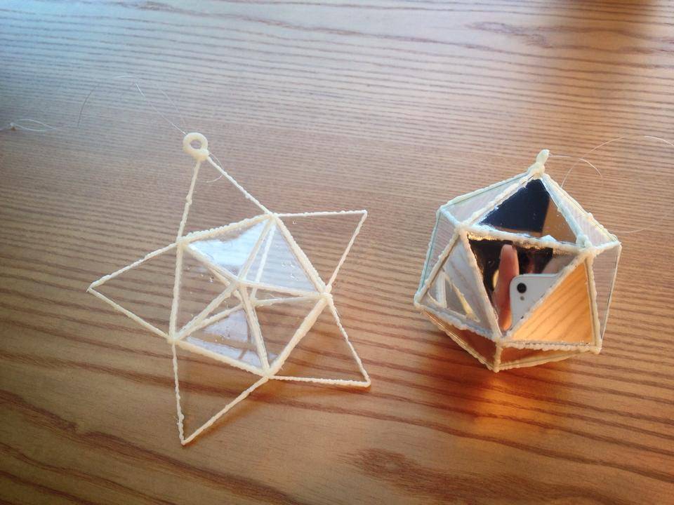 레이저 컷팅길로 아크릴을 삼각형으로 잘라 다면체를 만들었어요~ 접착은 3두들러로 했어요 :) 아크릴이 살짝 녹으면서 아주 잘 붙네요!! 이 필라멘트는 야광이어서 낮에도 밤에도 예쁜 장식을 볼 수 있겠어요 ^_^