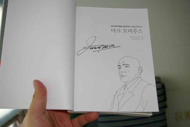 책에 직접사인해준 마크 모비우스 회장 30부를 받았는데 이벤트로 25부만 사용하고 5부는 영원히 간직할 예정입니다. 짧은 시간이 쌓여서 하루가 되고 하루가 쌓여 1주일, 1년, 10년, 평생이 된다는 것…. 끝없는 노력과 시장에 대한 믿음을 직접 보여주는 실력, 1등은 그냥 되지 않는다는 것을 일깨워 줍니다.