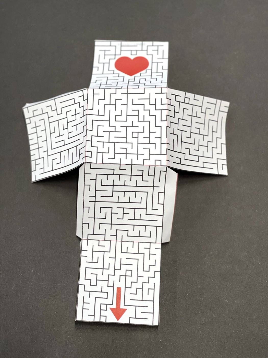 발렌타인데이 3D박스 미로찾기 하트로 출발해서 화살표까지 도달하면 지나온 길을 칠하면 글자가 나옵니다. 4글자가 나옵니다.